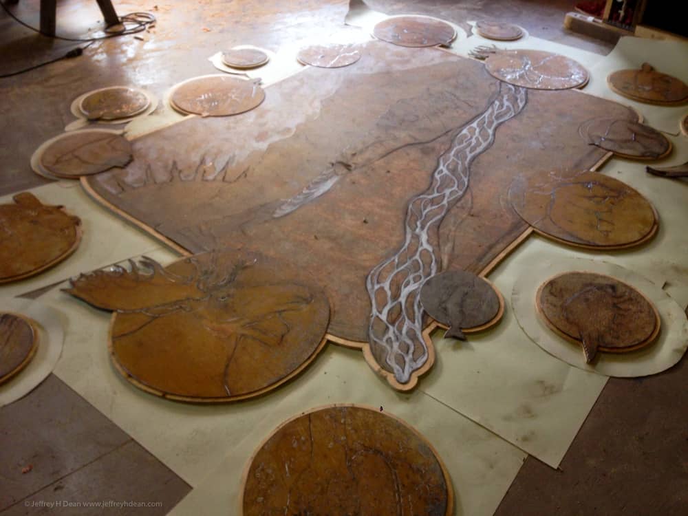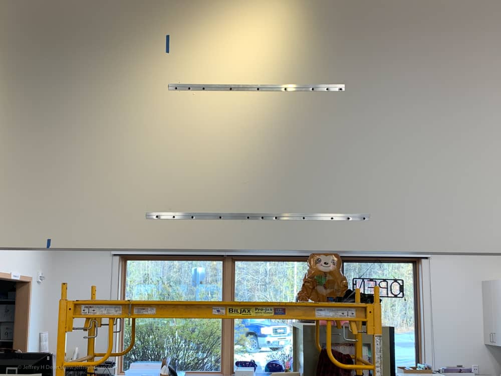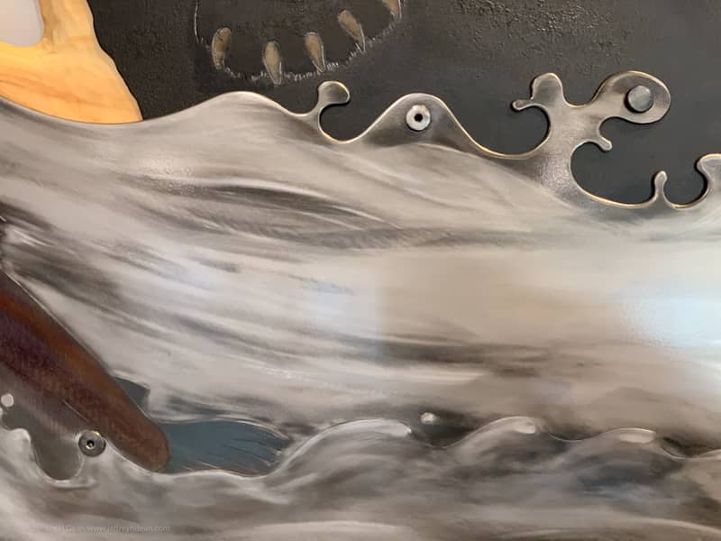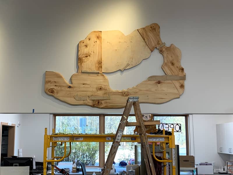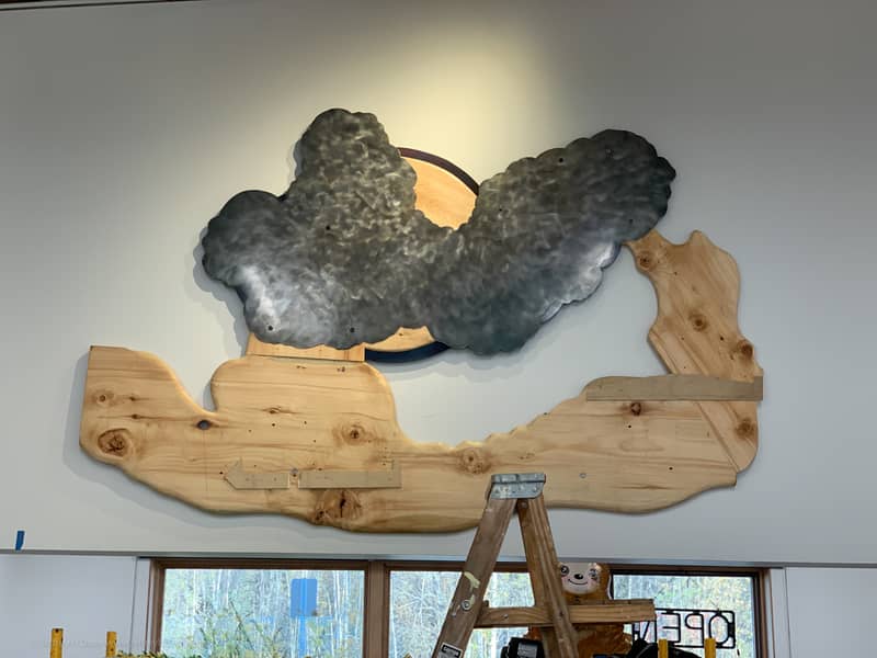 I installed the third version of my layered metal and wood wall art ‘The One That Got Away’ in the new library in Willow, a few hundred miles north of Homer. The Matanuska Susitna Borough commissioned it through their percent for the arts program. At just under nine feet wide, it’s the largest of the three.