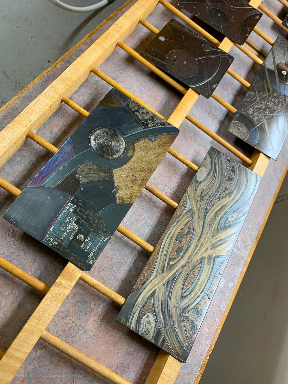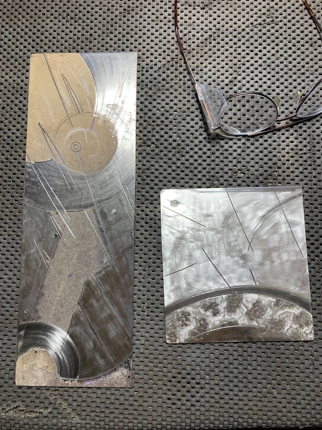 Color, too, goes relatively unplanned, following in the footsteps of that first abstract mosaic engraving from the lessons in my Art of Heat Colored Steel Engraving course.